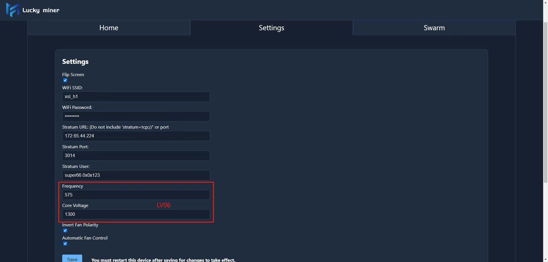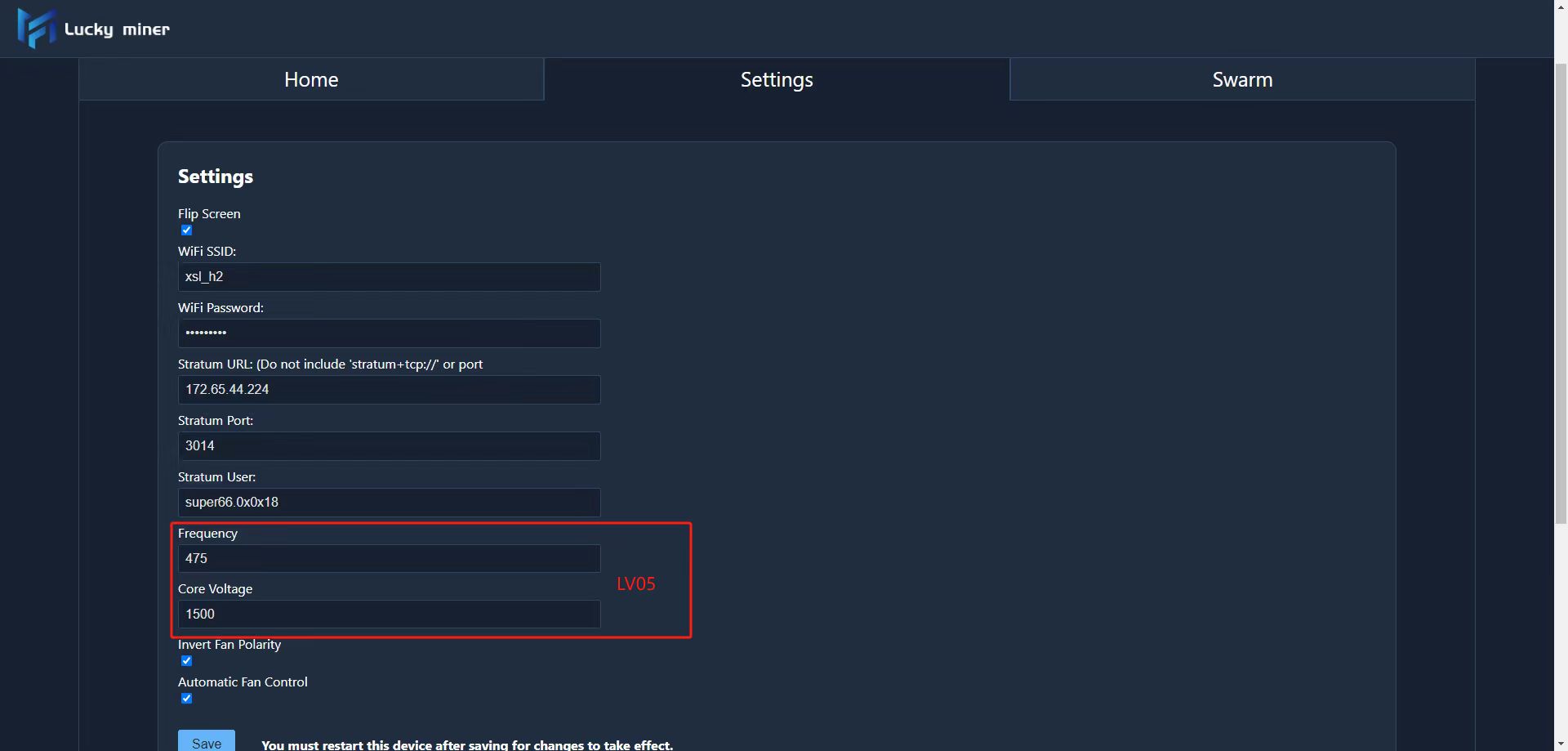 Solution: Reset the Luckyminer