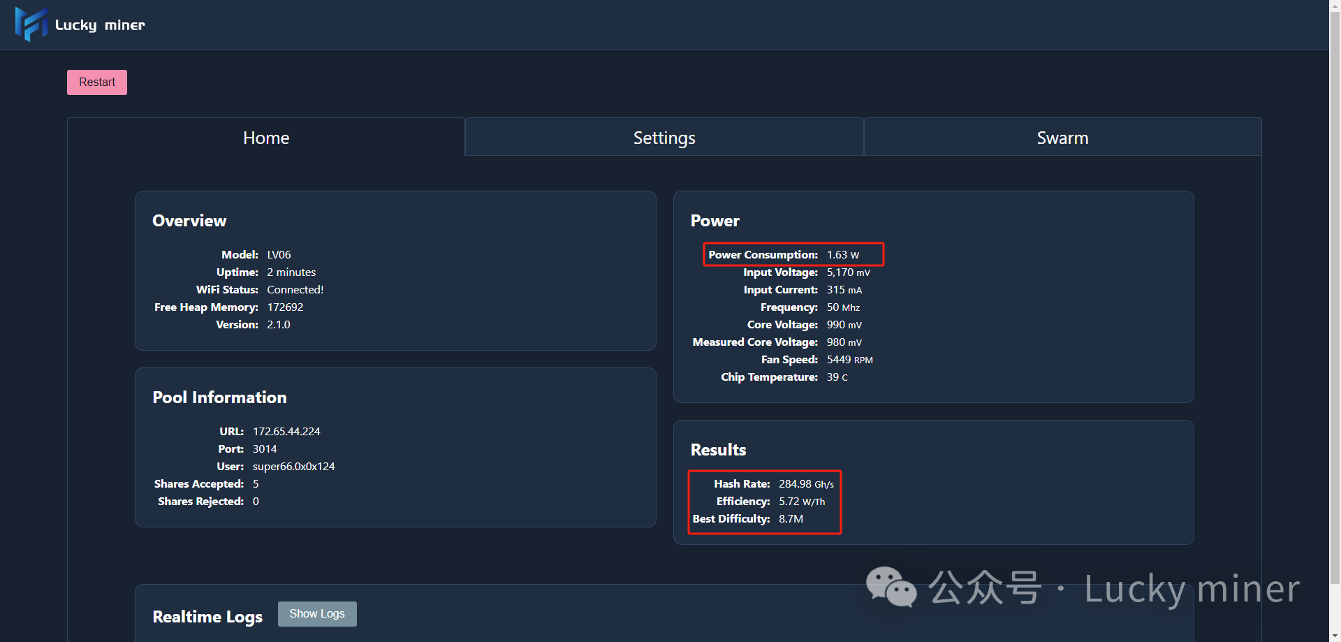 Trouble 5: Successfully Connected to Mining Pool, But the Shares Accepted Number 0