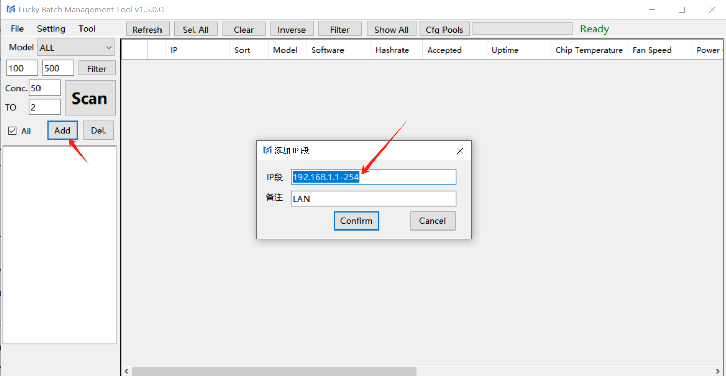 2.Add the IP address where the Luckyminer connected.