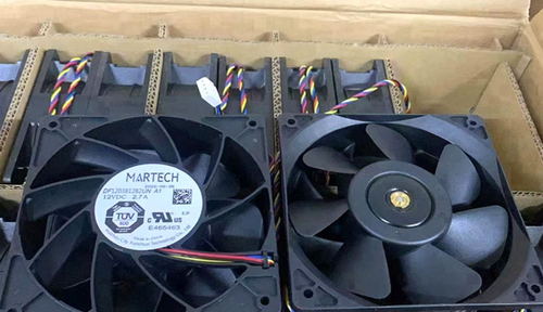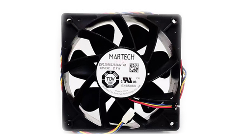 DF1203812B2UN A1 12V 2.7A cooling fan size 120*120*38mm, speed 6000, four-pin speed regulation. Suitable for S19 series miners. The rated voltage of the fan is 12V, and the current is 2.7A. Maintenance-free double ball bearings, long service life, sufficient cooling air volume, and air pressure.