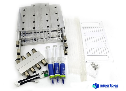 Antminer S19j Pro 104T no PIC liquid cold plate kit is used to modify s19j Pro 104T no pic hash board to help the hash board dissipate heat faster, realize its efficient operation and obtain more benefits. The water-cooled plate adopts an integrated water-cooled plate design, which has a better heat dissipation effect and more convenient installation. The kit includes an integrated water-cooling plate, M530 thermal grease, a water separator, chassis baffle, water-cooling tubes, etc., to help miners install the water-cooling plate quickly.