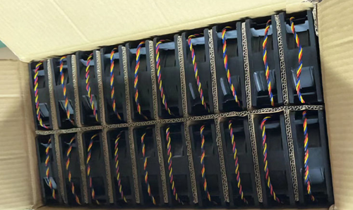 Brand new Antminer air-cooled miner fan 4Pin 12V 12038 cooling fan 120*120*38mm, fan speed 6000 rpm, 4P fan interface, high-precision double ball bearings, suitable for antminer S9 series, T9 series, S11, V9, 15 series, 17 series, 19 series, A3, B7, D3, D5, DR3, DR5, E3, K5, L3 series, X3, Z9 series, Z11 series, Z15, and other miners.