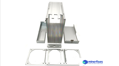 The Antminer S19j pro chassis adopts a new silver metal frame, which assembles the S19j pro miner hash board, control board, and cooling fan to ensure that all components work properly, thereby reducing internal components from external impact damage and reducing dust coverage. The casing is easy to move and clean, ensuring the miner can run stably.