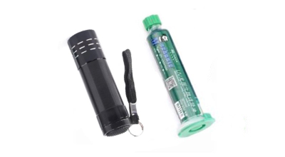 Prepare a tool brush, squeeze a little UV curing solder mask ink onto the brush, apply it evenly on the PCB circuit board, irradiate it with ultraviolet light or sunlight for a few seconds to tens of seconds, and shake the PCB board to observe until the ink no longer flows.