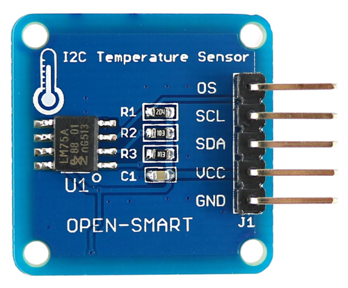 The LM75A is an industry-standard digital temperature sensor with an integrated sigma-delta analog-to-digital converter (ADC) and I2C interface. The LM75A provides 9-bit digital temperature readings with an accuracy of ±2°C from –25°C to 100°C and ±3°C over –55°C to 125°C. The LM75A operates with a single supply from 2.7 V to 5.5 V. Communication is accomplished over a 2-wire interface which operates up to 400 kHz. The LM75A has three address pins, allowing up to eight LM75A devices to operate on the same 2-wire bus. The LM75A has a dedicated overtemperature output (O.S.) with programmable limit and hysteresis.