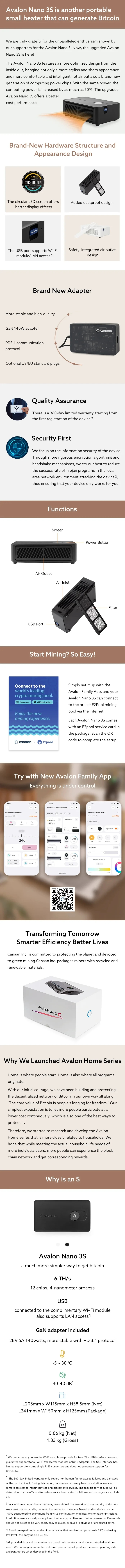 Canaan Avalon Nano 3S 6TH/s Bitcoin With Cannan PSU