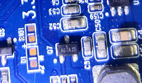 AO3423 is a P-Channel enhancement mode field effect transistor in Whatsminer H3 control board with AS** silkscreen marking. It uses advanced trench technology to provide excellent RDS(ON), low gate charge, and gate voltages as low as 2.5V. The device is suitable for use as a load switch or PWM applications.